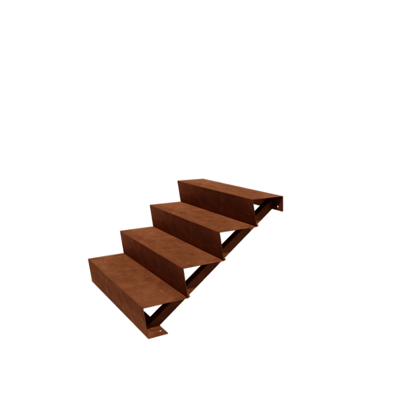 Materjal Need astmed on valmistatud kvaliteetsest Corten-A terasest. Selle metallitüübi ainulaadne omadus on see, et see moodustab väga tiheda oksüüdikihi (rooste kiht). Roostetamine on seetõttu võimatu. Tihe oksüüdikiht kaitseb sügavamal asuvat materjali hapniku eest, mistõttu oksüdatsioon aeglustub, samas kui korrosioon jätkub. Cortenterasest trepp tarnitakse roostetamatuna, halli metallivärviga. Roostetamisprotsessi algus toimub esimesel 2 kuul, selleks ei ole vajalik mingit töötlemist. Roostetamisprotsessi ajal võib trepp jätta jälgi. Cortenteras on metallisegu, mis koosneb raudast, millele on lisatud vaske, fosforit, räni, nikkelit ja kroomi.