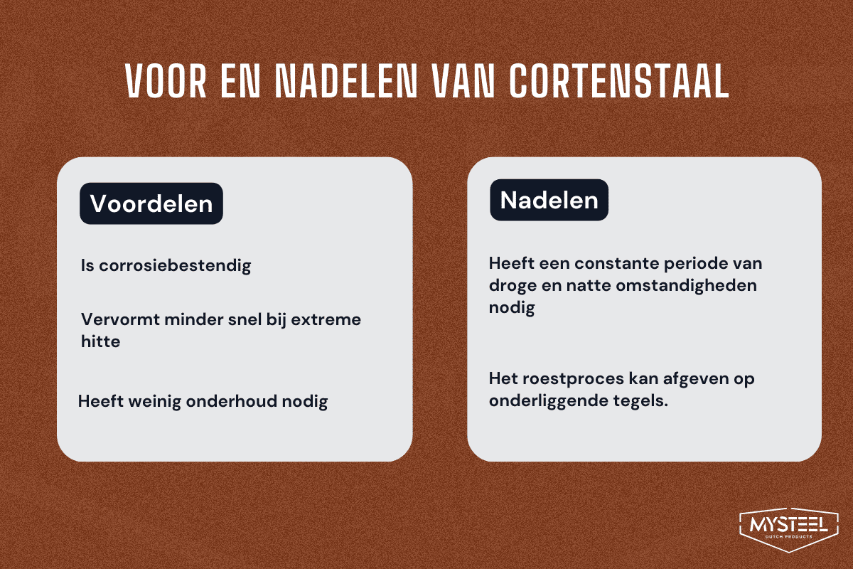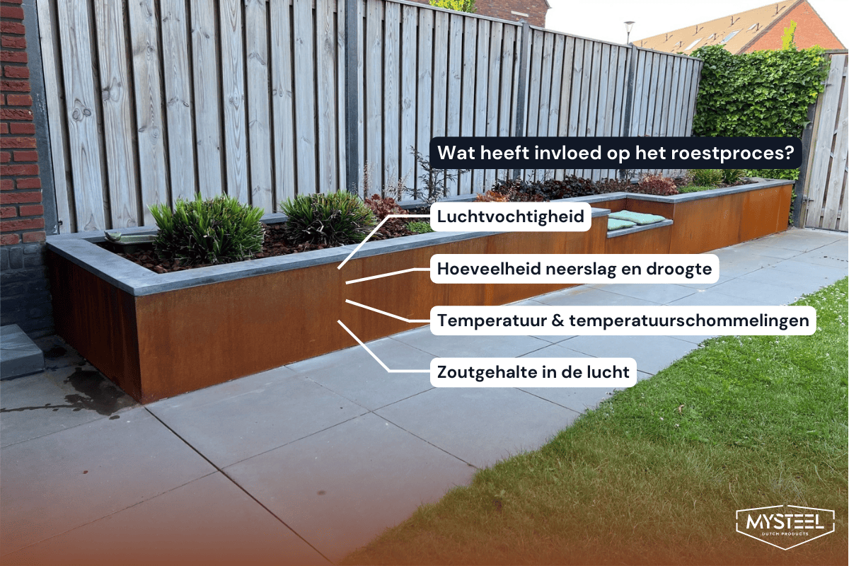 Cortenteras moodustab roostetamisprotsessi jooksul äratuntava rooste kihi. See loomulik protsess algab nädalate või kuude jooksul, kuid võid seda ka ise kiirendada.