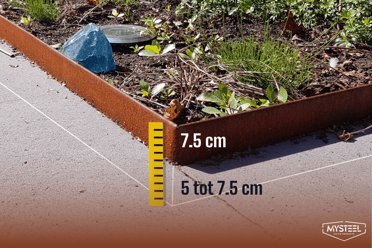 Kui paigaldate oma aeda cortenteraast ääreranda, on oluline, et maa oleks kindel ja pisut niiske. Nii vältid, et äärerand vajub maha. Valige kindlad ankruid (meie väikesed ja suured cortenteraast maapinna klambrid) ja koppelplaadid (meie väikesed ja suured cortenteraast koppelplaadid), mis sobivad hästi äärerandadele.