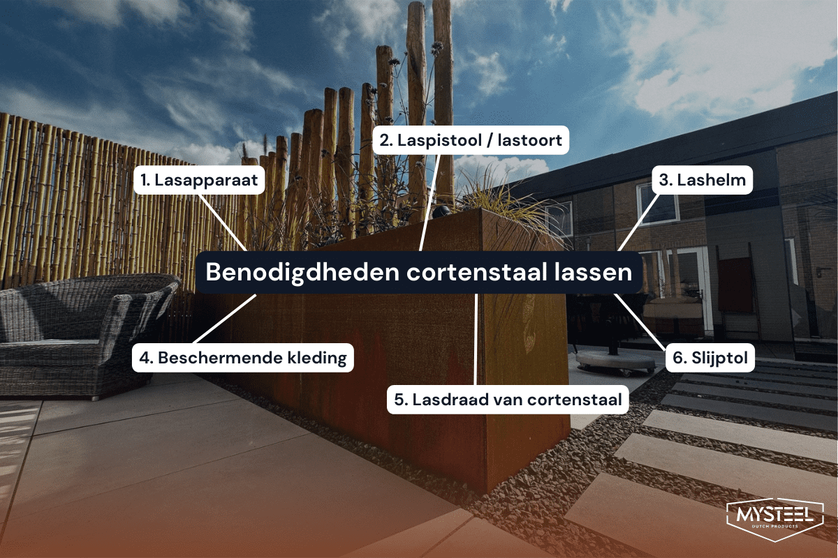 Corten-terase keevitamiseks vajate mitmesuguseid tööriistu ja materjale: