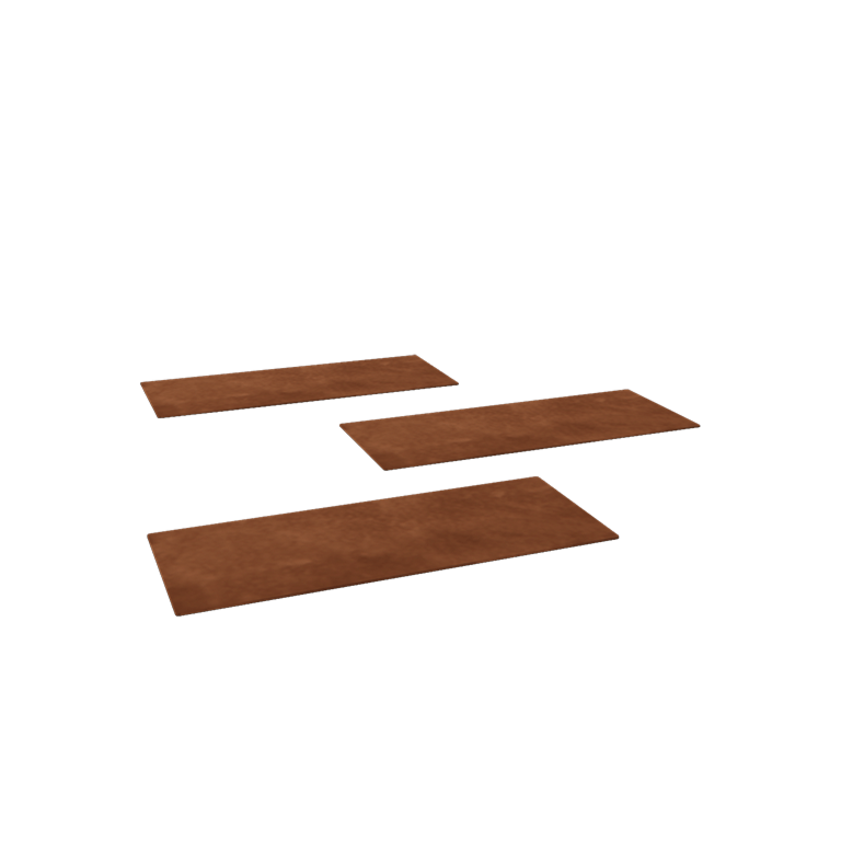 Need astmeplaadid on valmistatud kvaliteetsest Corten-A terasplekist. Cortenteras on metallisegu, mis koosneb raudast, millele on lisatud vaske, fosforit, räni, niklit ja kroomi. Selle metallitüübi ainulaadne omadus on see, et see moodustab väga tiheda oksüüdikihi (rooste). Seetõttu on läbi roostetamine võimatu. Tihe oksüüdikiht kaitseb sügavamal asuvat materjali hapniku eest, mistõttu oksüdeerumine aeglustub, samas kui korrosioon jätkub. Cortenterasest astmeplaadid tarnitakse roostetamatuna, see tähendab halli metallivärviga. Roostetamisprotsess algab esimesel 2 kuul, selleks ei ole vaja mingit töötlemist. Cortenterasest astmeplaate toodetakse meie enda spetsialistide poolt. Pange tähele; roostetamisprotsessi ajal võib astmeplaat jätta jälgi.