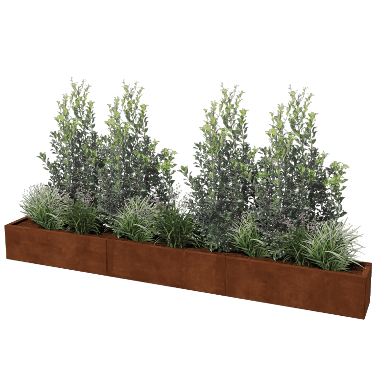 Ülemine serv on kahekordne. See annab taimekastile ajatu ja julge välimuse. Roostes värv annab sooja ilme ja muudab need taimekastid sobivaks nii modernsetesse kui ka klassikalistesse aedadesse. Materjali paksus sõltub kõrgusest. Taimekastid, mille kõrgus on kuni 60 cm, on 1,5 mm paksused. Alates 80 cm kõrgusest on materjali paksus 2 mm. On põhjalikult testitud, et need paksused on taimekastide jaoks piisavad.