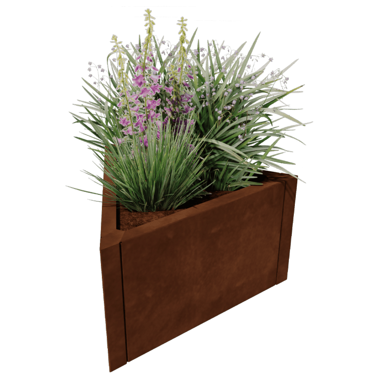 Ülemine serv on kahekordselt ümber pööratud. See annab taimekastile ajatu ja julge välimuse. Roostes värv annab sooja ilme ja muudab need taimekastid sobivaks nii modernsetesse kui ka klassikalistesse aedadesse. Materjali paksus sõltub kõrgusest. Taimekastid, mille kõrgus on kuni 60 cm, on paksusega 1,5 mm. On põhjalikult testitud, et see paksus on taimekastide jaoks piisav.