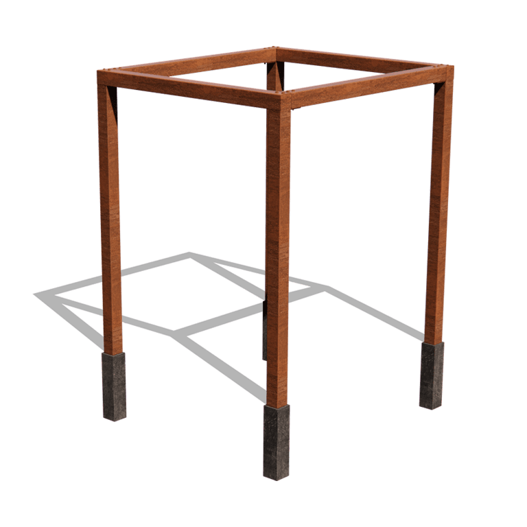 See pergola on valmistatud kvaliteetsest Corten-A terasest, metallisegus, mis koosneb raud, vask, fosfor, räni, nikkel ja kroom. Cortenterasest ainulaadne omadus on tiheda oksüüdikihi moodustumine, mis toimib kaitsvana roostekihina. See kiht takistab läbi roostetamist ja kaitseb sisemist materjali edasise oksüdeerumise eest, samas kui korrosiooniprotsess jätkub aeglaselt.