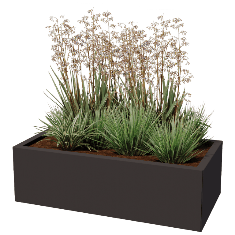 See taimekast on modulaarne terasest taimekast, mis tarnitakse ehituskomplektina. Taimekast koosneb eraldi paneelidest ja nurkadelementidest. Kastid on täielikult peidetud ühendustega. Meie modulaarse süsteemi abil on võimalik ka väga suuri mõõtmeid. Nurkadelementide kasutamine võimaldab luua unikaalseid vorme, mida ei ole mujal standardina saadaval. Lisainformatsiooni leiate kasutusjuhendist.