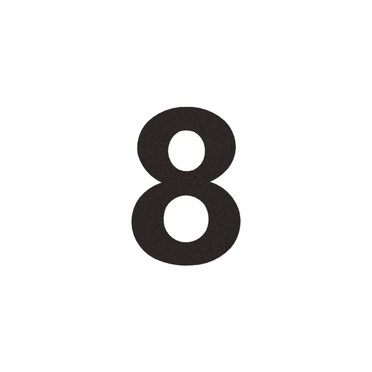 See maja number on varustatud vahehoidjatega, mis tagavad, et maja number paigaldatakse seinast väikese vahega. Vahehoidjad tagavad, et lõpptulemus on puhas, andes mulje, et maja number hõljub. Paigaldamisel keerad kaasasolevad keermestatud pulgad vahehoidjate keermesse ja seejärel lükatakse need seina (tihendiga täidetud) puuriavasse. Pärast tihendi kuivamist jääb maja number kindlalt seina külge. Maja number on valmistatud roostevabast terasest. Tooteid katab must matt struktuuriga kate. See kate on UV-kindel.