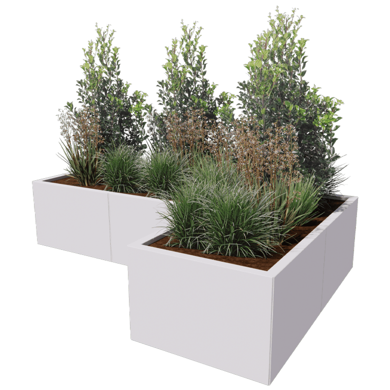 See taimekast on modulaarne terasest taimekast, mis tarnitakse ehituskomplektina. Taimekast koosneb eraldi paneelidest ja nurkadelementidest. Kastid on täielikult peidetud ühendustega. Meie modulaarse süsteemi abil on võimalik ka väga suuri mõõtmeid. Nurkadelementide kasutamine võimaldab luua unikaalseid vorme, mida ei ole mujal standardina saadaval. Lisainformatsiooni leiate kasutusjuhendist.